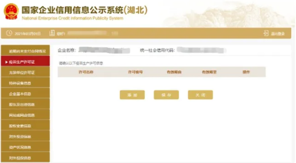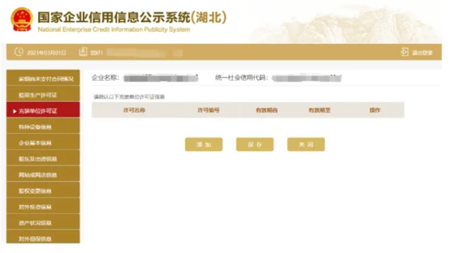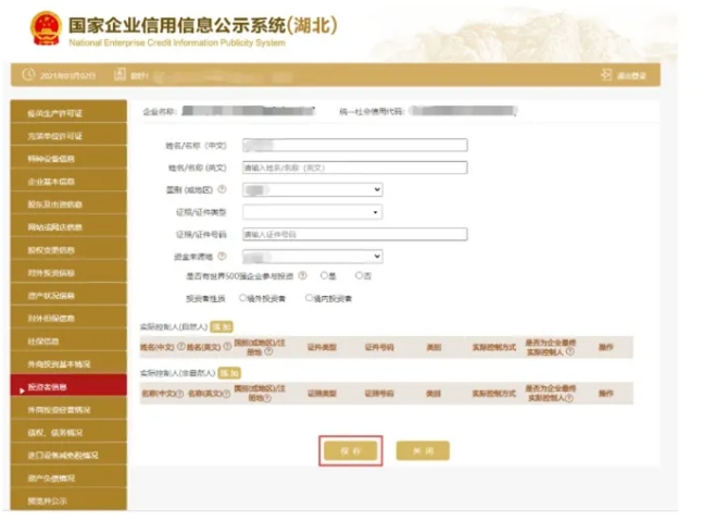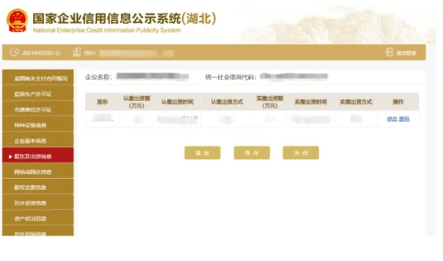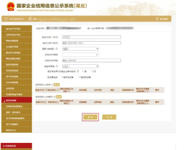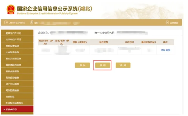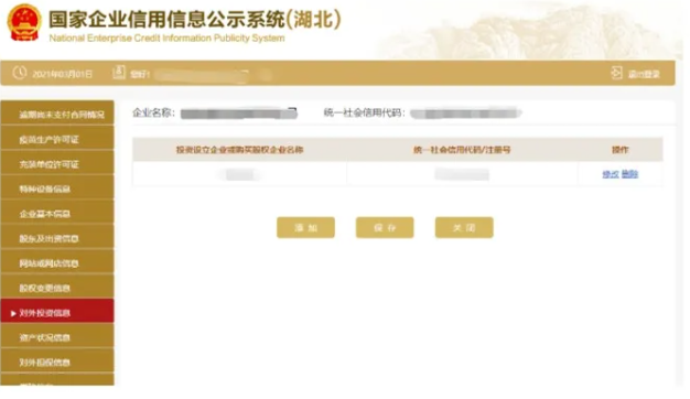 對外投資信息 進入對外投資信息頁面 點擊添加填寫對外投資信息 點擊保存可填寫多條對外投資信息 也可刪除或修改。