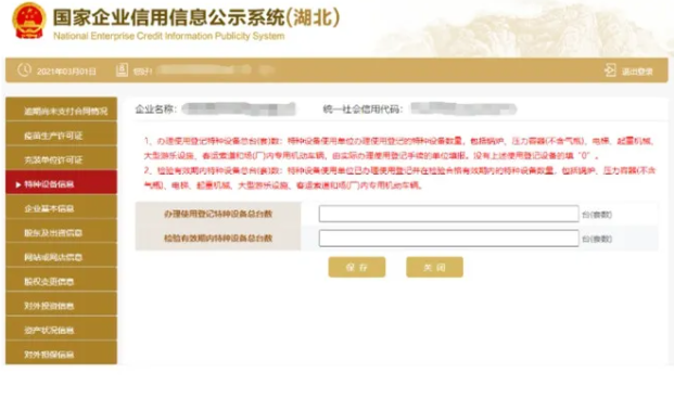 填寫特種設備信息