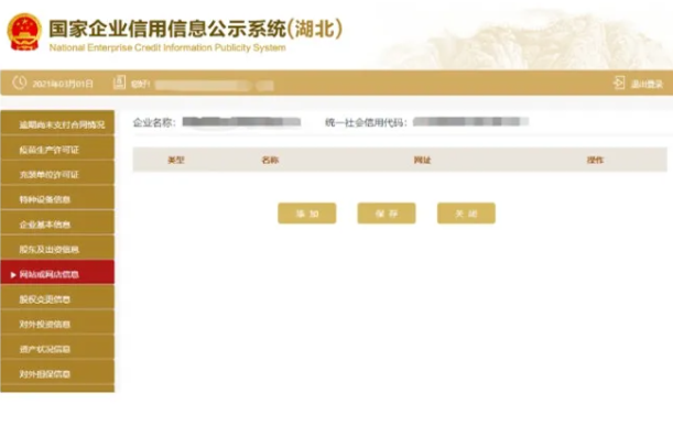 進入網站或網店信息頁面 點擊添加 填寫企業網站或網店信息 填寫完成 點擊保存。