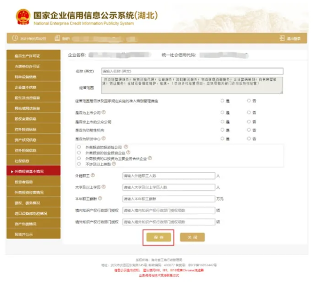 進入外商投資經營情況頁面 填寫相關信息 點擊保存。