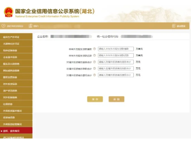 進入債權 債務情況頁面 填寫相關信息 點擊保存。