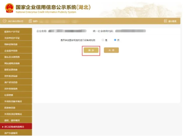 進入進口設備減免稅頁面 填寫相關信息 點擊保存。